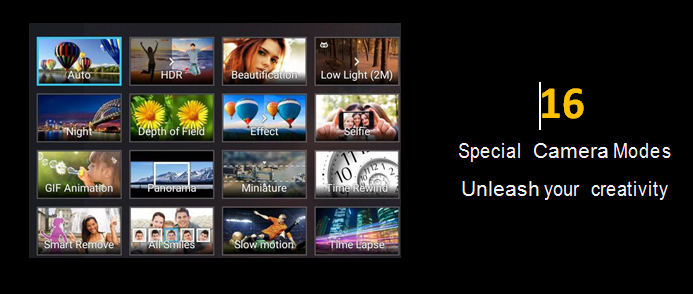 | Camera Features | Modes: Back Light (HDR) mode, Real Time Beautification, Night Mode, Depth of Field, Selfie Mode, Photo Effects, Panorama Mode, Time Rewind, Smart Remove, All Smiles, Time Lapse, Slow Motion | Not Specified | ||