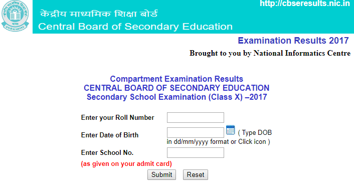 Many students of class 10th were eagerly waiting for their result of Compartment Examination Results – 2017 Secondary School Examination (Class X) Results 2016 (All Regions) along with private school candidates across the nation. visit http://cbseresults.nic.in/class10rdscmpt/Class10th17c.htm or http://cbseresults.nic.in/