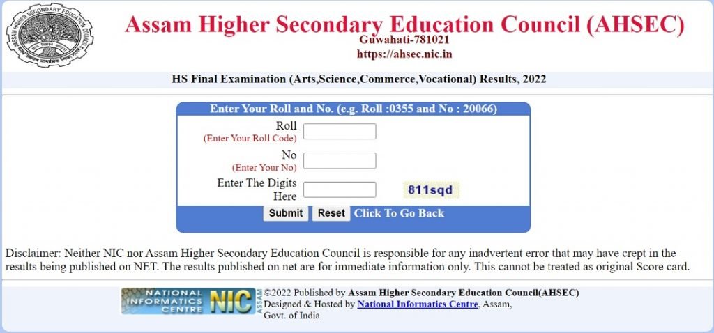 - Click on the Above link to check your AHSEC HS Final Examination Result 2022 Online or visit https://resultsassam.nic.in/ahsecroll.aspx
