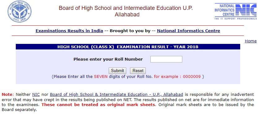 Name of Examination: UP Board Class 10th Result 2018 | UP Board High School Result 2018
