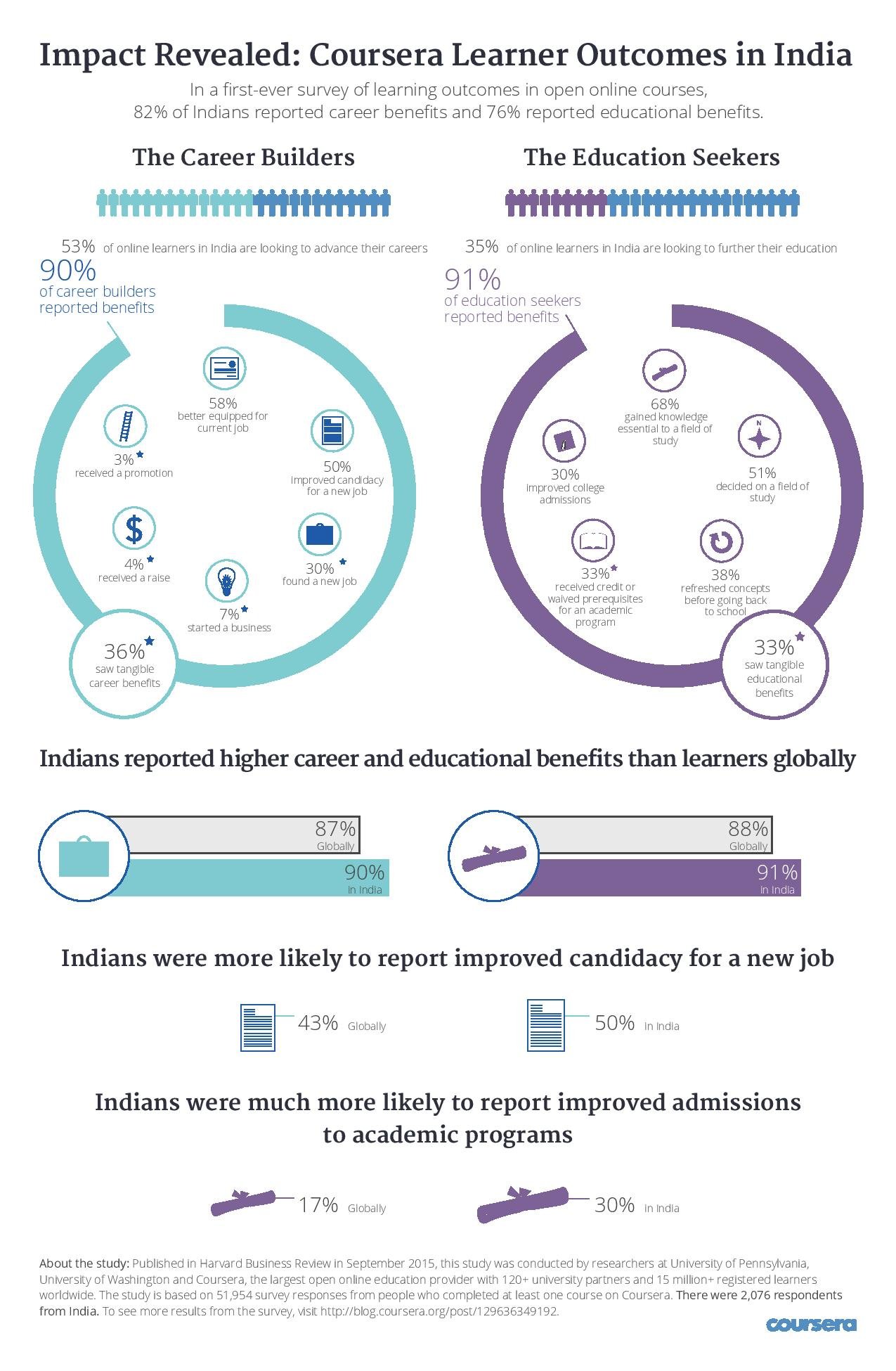 Many people like Sunny face challenge of access to opportunities to learn new skills throughout their careers. At Coursera, we want to enable anyone at any point in their life to learn a new skill or advance their knowledge with courses from the world’s best universities. Indians have been quick to pick up on the advantages of online education. India recently jumped China as Coursera’s second largest market (only after the US) with 1.8 million registered learners. 60,000 new people join Coursera every month from India alone.