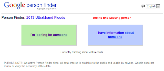 Once again Google Stands for The People missing in the natural disaster at Uttrakhand including kedarnath. and help them, They made a tool to find a people missing in uttrakhand or a user also can register a name if they know someone is missing and trying to help someone.