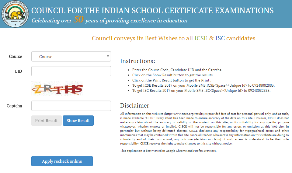 The  Indian Certificate of Secondary Education (ICSE) Class 10th and Indian School Certificate Class 12th Result 2017 is officially declared. As CISCE don’t have any grading system like CBSE Board and From last year, in 2016 the Board introduced Live Ink Character Recognition (LICR). This LICR actually captures and digitalises marks entered on the top sheets of answer scripts and instantly encrypts and transfers the captured data to the Council’s cloud-based servers directly from the evaluation centres. Many students and parents were eagerly waiting for the result and finally the wait is over. you can check your result from the below working link or visit http://cisce2017rprod090.azurewebsites.net/ as the official website is down right now.