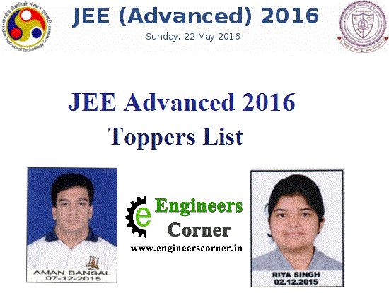 JEE Advanced Result 2016 – List of Top 3 Toppers and Complete Rank List:-