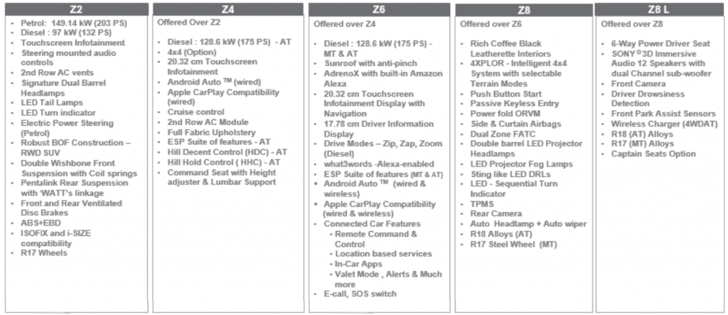 | Scorpio-N Variant | Gasoline MT | Diesel MT |