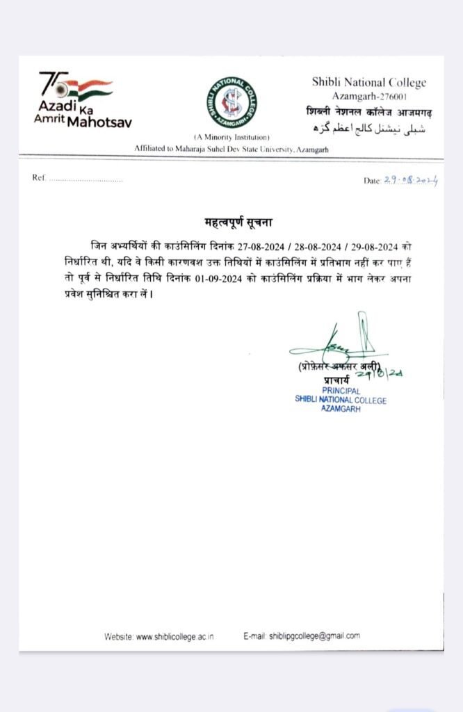 Shibli National College has issued a crucial update for students regarding the rescheduling of counselling dates. Originally scheduled for August 27, 2024, August 28, 2024, and August 29, 2024, the counselling sessions have been shifted. Students who were unable to attend the counselling on these dates due to any reasons can now participate in the rescheduled session on September 1, 2024.