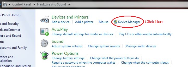 - Now, in Device and Printers Click on “Device Manager” as Shown in the Picture Below:
