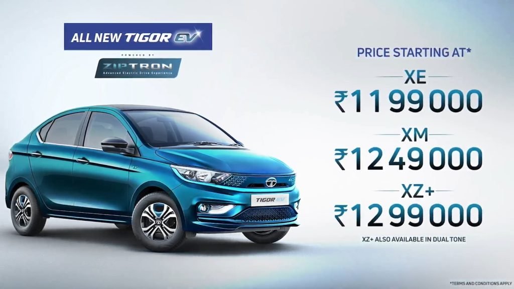 | Tigor EV XZ+ :- | 12.99 Lakhs; (Dual Tone option – 13.14 Lakhs) |