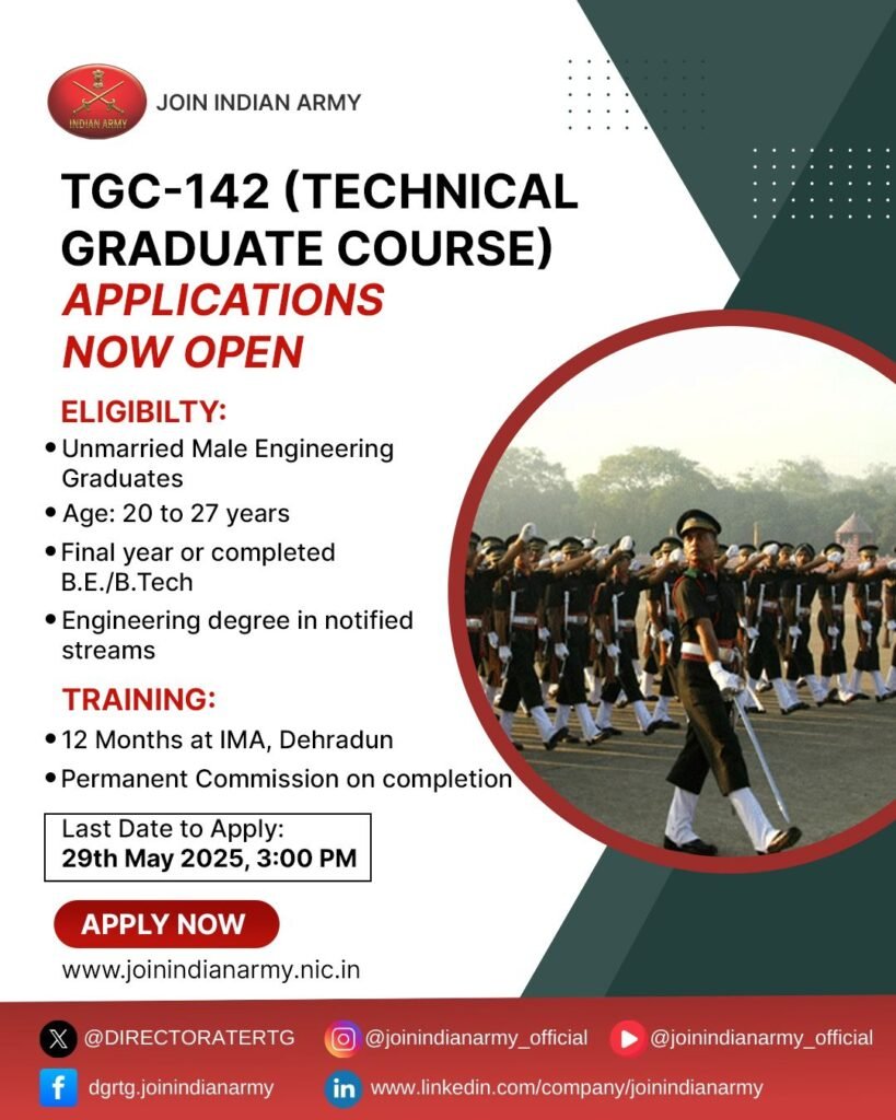 Are you an engineering graduate with a burning desire to serve the country while building a rewarding career? The Indian Army has just rolled out an incredible opportunity for you! The Directorate General of Recruiting, Indian Army, recently announced the Technical Graduate Course (TGC-142) for January 2026, inviting applications from unmarried male engineering graduates. If you’ve ever dreamt of leading with pride as an officer in the Indian Army, this could be your chance to shine. Let’s dive into the details of this exciting recruitment drive and why it’s a game-changer for aspiring engineers and get some great salary package and benefits.