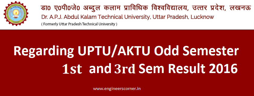 Link to Check Result: CLICK HERE to Check your UPTU/AKTU Odd Semester 1st, 3rd semester (first year and second year) Result 2016 or visit www.uptu.net.in or www.aktu.ac.in